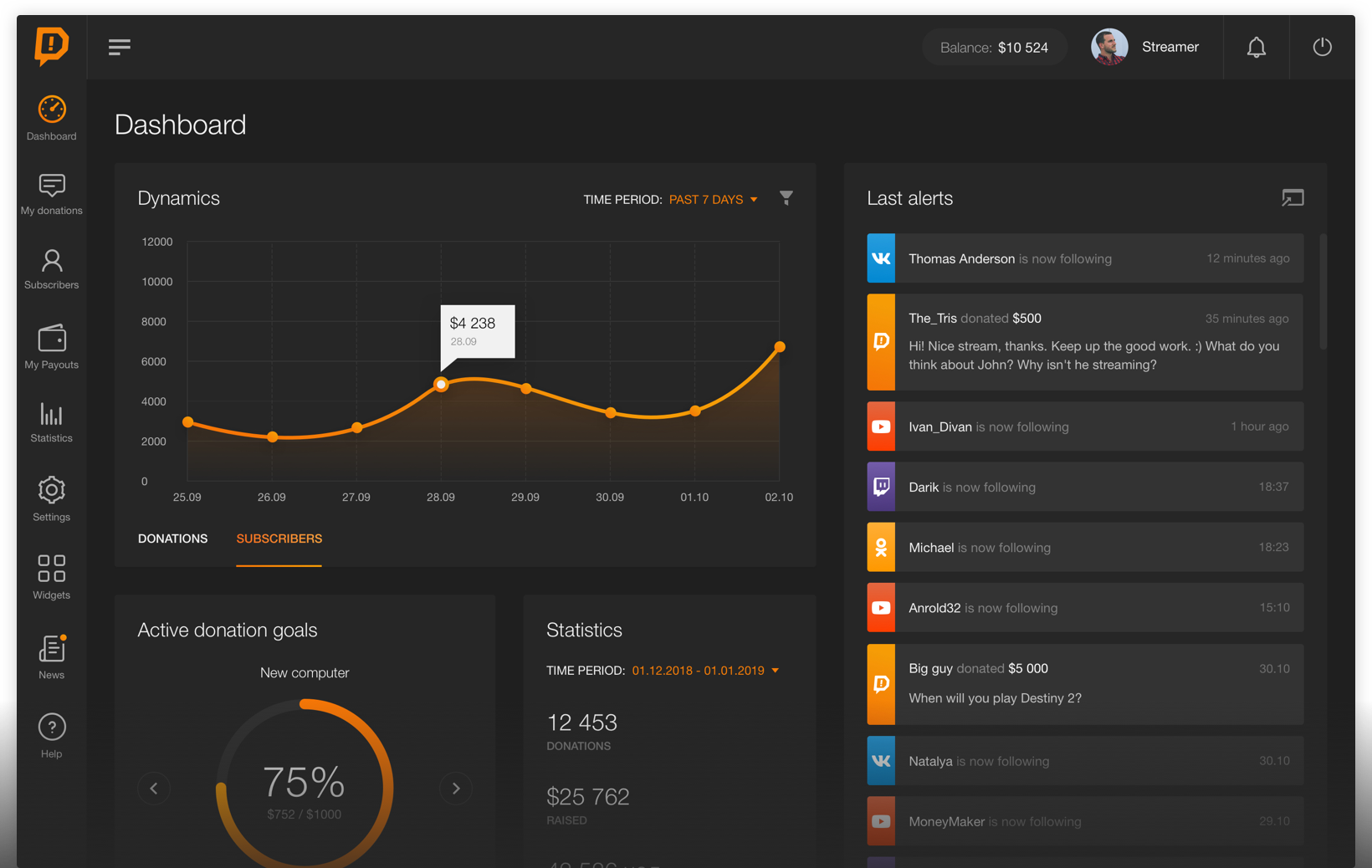 Настроить форму оповещений и дизайн шапки донатов можно в разделе «Страница пожертвования».