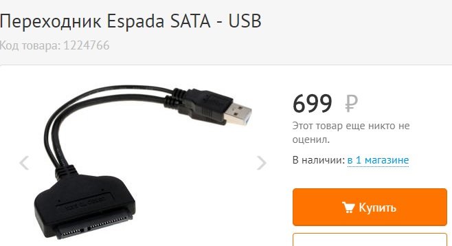 Как в оффлайн-магазинах, так и на онлайн-площадках — выбор есть. И выбор весьма обширный. Однако, далеко не всегда есть в наличии обычный 2,5-переходник без доп. питания, корпуса и других дополнительных вещах, которые, в общем-то, не нужны. Из-за этого цена адаптеров не всегда адекватная. Самые дешевые варианты в русскоязычном сегменте мы нашли в магазинах ДНС (700 рублей) и Олди (500 рублей). И это без учета доставки (+ рублей 200-300, как минимум, если нет в наличии в магазине вашего города)
